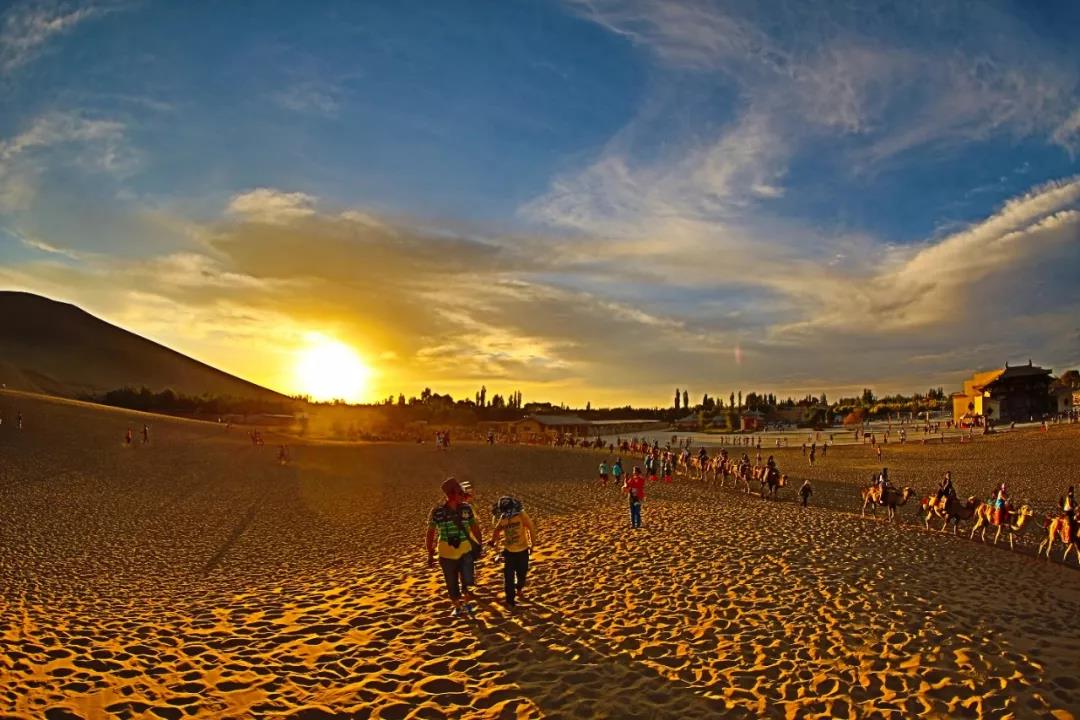 爬上鸣沙山月牙泉山头,邂逅“大漠孤烟直,长河落日圆的”的旷景。via:鸣沙山月牙泉
