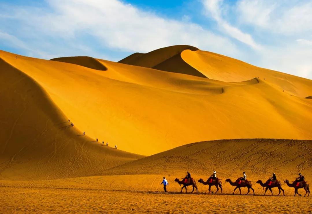 骑上骆驼,游走于大漠之上,感受彼时黄沙驼铃,商旅贾客的场景。via :鸣沙山月牙泉