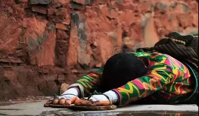 五步一磕头的虔诚的藏民或信徒