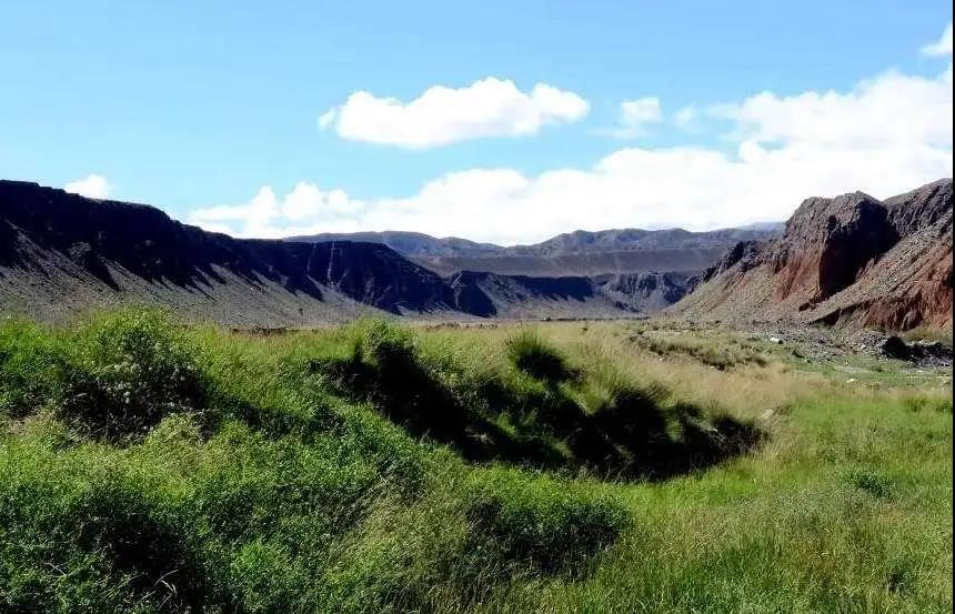 九月的夕阳,那阳光照在脸上,有一种辉煌的感觉;那阳光映身上,给人一种华丽的色彩;骄阳染红了红柳沟柱状丹霞,染红了当金山巍峨,染红了哈尔腾旷野,把我们从现实中的一串串脚印领到了远去的绵长的悠悠岁月。