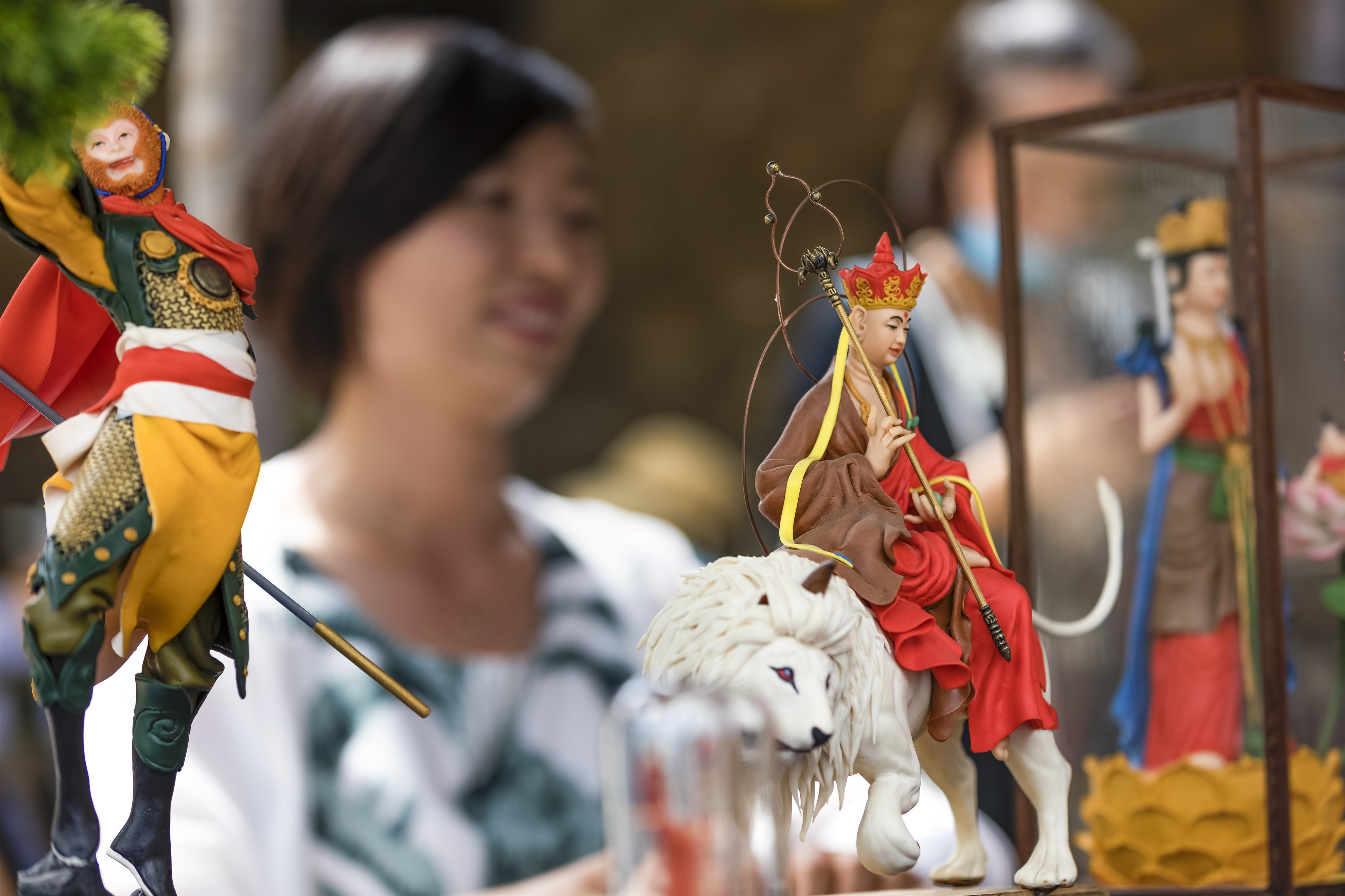 ▲面塑作品《西游人物》栩栩如生,表现了西游各人物的形态特征。 原和平 摄