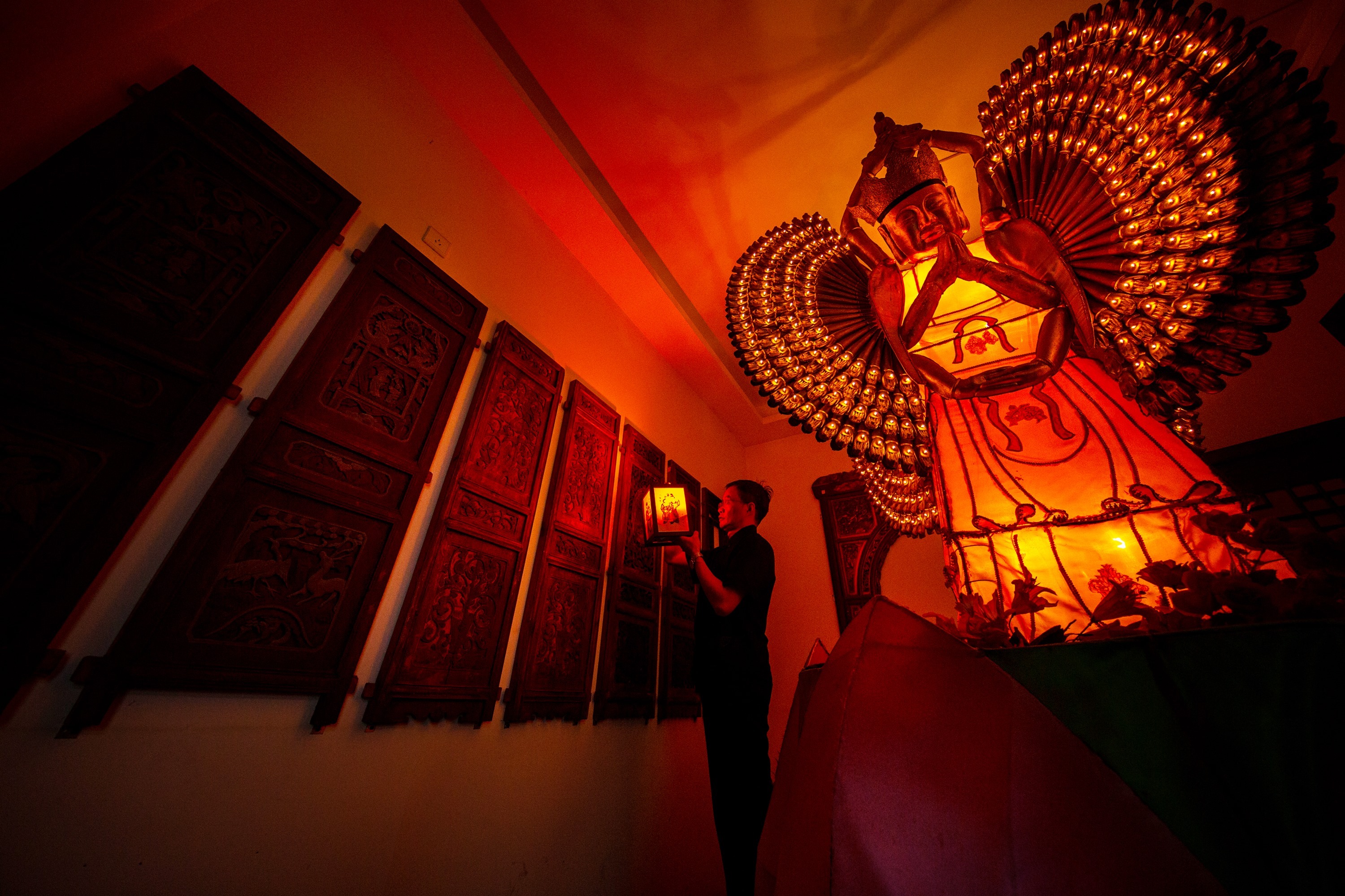 ▲在古城开封的理事厅街西头,有一座百年院落,张家七代人在这里制作彩灯。而今,这里成了一座免费展览馆——“汴京灯笼张”彩灯展览馆。 王晨阳 摄在古城开封的理事厅街西头,有一座百年院落,张家七代人在这里制作彩灯。而今,这里成了一座免费展览馆——“汴京灯笼张”彩灯展览馆。 王晨阳 摄
