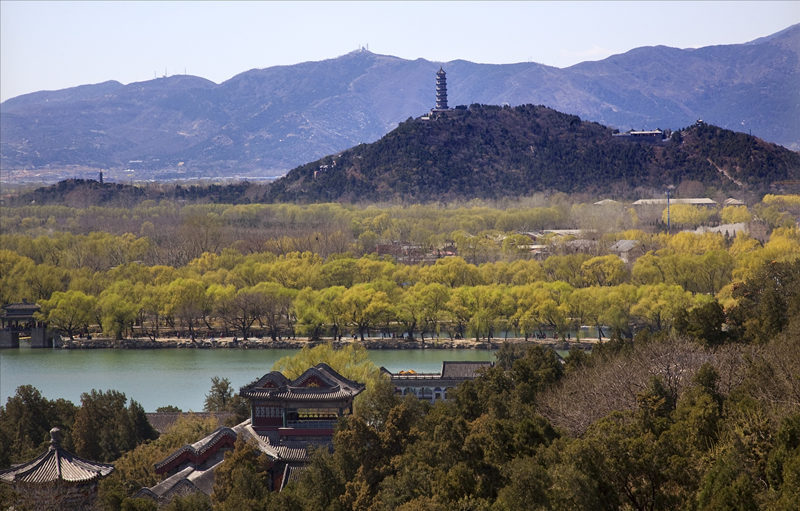 北京颐和园,始建于1750年,1860年在战火中严重损毁,1886年在原址上重新进行了修缮。其亭台、长廊、殿堂、庙宇和小桥等人工景观与自然山峦和开阔的湖面相互和谐地融为一体,具有极高的审美价值,堪称中国风景园林设计中的杰作。