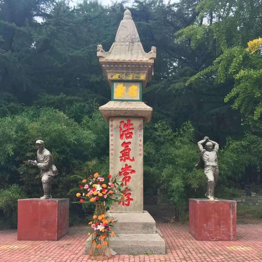 红色看点 抗日烈士陵园,为纪念八年抗战中牺牲的烈士而修建的,有353位烈士长眠于此。陵园的正前方耸立着一座纪念碑,碑高6米,正面篆刻着“浩气长存”四个大字,碑的左侧面是251字的碑文,碑的后面与右侧面是261位烈士的英名。缅怀为国捐躯的先烈,革命先烈永垂不朽。