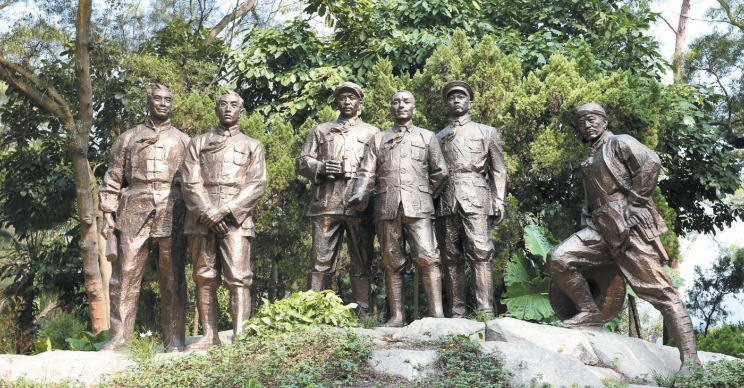 百色起义英雄雕塑园里的“百色起义领导人”组雕。陆杰 摄